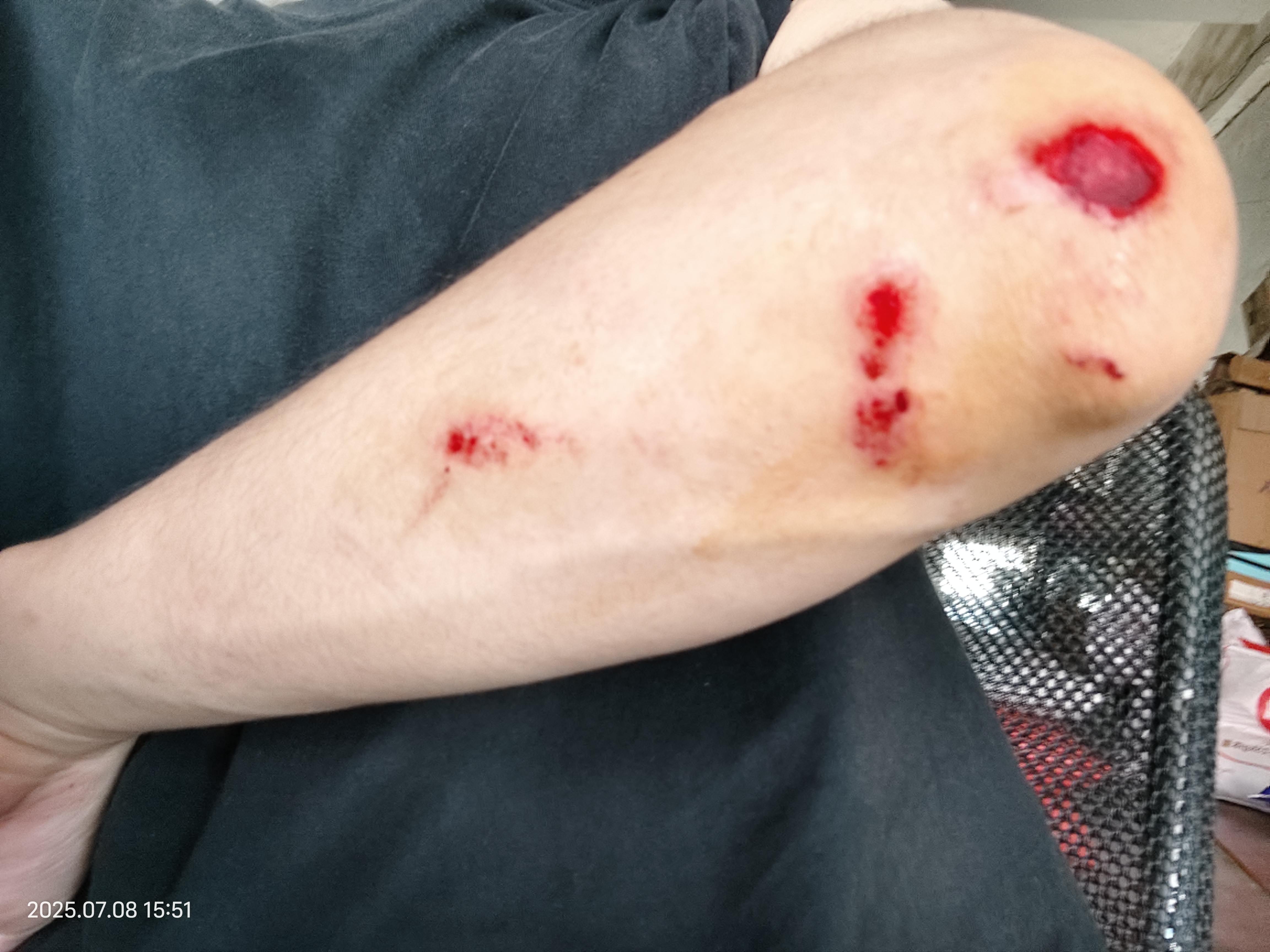 今天这霉运,简直像被老天爷点名“关照”了。忙着去仓库拉货去送,当时正骑着摩托车往仓库赶,那段路没有什么车,眼瞅着快到仓库了,突然右侧一辆电瓶车 —— 她连头都没回一下,直接打了方向往路左侧的巷子拐去的,我脑子里“嗡”的一声,下意识捏紧刹车,摩托车没刹住撞上去了,我整个人往前扑出去,往右边倒下后右手先着了地,疼得我当场就冒了冷汗。等缓过神来低头看,右手关节处的皮蹭掉了一大块,血混着地上的泥沙黏在伤...
